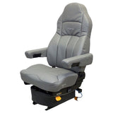 This silver high-back seat features two-way adjustment and air lumbar support, providing enhanced comfort and ergonomic support for extended driving. Its durable construction ensures long-lasting reliability in heavy-duty vehicle applications.